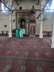 Just down the street from St. George shrine is Amr ibn al-As mosque. Amr ibn al-As was a contemporary and companion of Islam’s prophet Muhammed, and the site of the mosque sits on the site of his tent while he was a commander of the Muslim army. Nothing of the original mosque remains, it has been rebuilt since its destruction, but when it stood originally it was the first mosque in the whole of Africa. It was prayer time when we arrived, so as a non-muslim I was asked to wait outside. Kareem stayed with me so I would not be alone while Dr. B and Yasser went in to pray. After the short prayer time, tourists were welcomed back into the mosque. We removed our shoes at the entrance and I was given a grand tour of the beautiful building, along with history and religion lessons from my hosts. As we were preparing to leave, a large group of people came running into the building carrying a lightweight casket. Dr. B explained that in Egypt, they prefer to bury bodies very quickly after death, so a funeral consisted mostly of carrying the body to the mosque where it was oriented towards Mecca while friends and family gathered around to pray. Dr. B, Yasser, and Kareem went to pray with and offer condolences to the family (who they did not know) and I was invited to sit nearby and pray for the soul of the departed and for the comfort of his family in my own way.