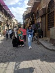 One of the biggest tourist attractions in Old Cairo is the bazaar district and it was high on my list of things to see. A huge neighborhood of streets enclosed in an ancient stone wall with eight distinct, elaborate, enormous gates, it is a pedestrian-only sect of markets (souks) and mosques frozen in time. It is not only popular tourist destination, but a big hang out for the locals, and we saw large groups of Cairo teenagers on “recess” from school playing soccer in mosque gardens, singing Arabic rap songs while standing on benches trying to impress the teenage girls, and just walking down the street arm in arm with each other. This is the place to buy souvenirs. This place is so distinctly old Egypt and was honestly one of my favorite things about Cairo. I asked if people lived in the district and Dr. B told me that few people have apartments here, as there are not many livable houses in these incredibly old buildings anymore. It would be expensive to live here. Mostly diplomats and the like. Plus, once the gates close in the evening, they are closed for good until morning. Having been force fed lots of water and juice, I found myself worried that I was not going to find a public bathroom in this place. “We’re going to a bathroom,” I was told. Ok then. We walked along the shops and I had this truly unique experience of being a western female tourist without being harassed by the shopkeepers, as I was surrounded on all sides by locals. I was able to browse and observe at my leisure. This is not the experience of most tourists. Vendors are pretty aggressive here, as I learned when I fell behind my group for a moment once.